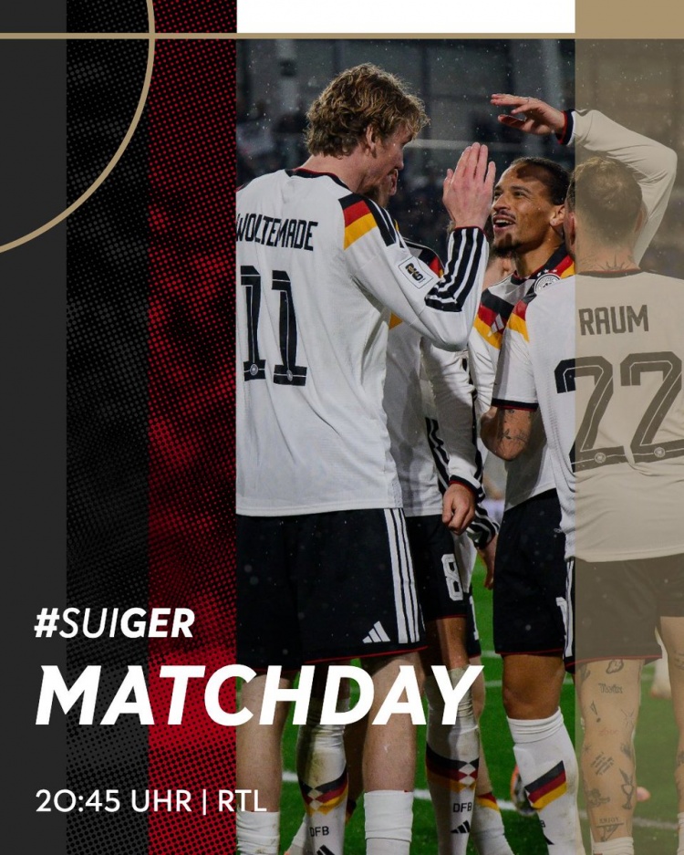 德国队发布对阵瑞士友谊赛海报:沃尔特马德、萨内、劳姆出镜